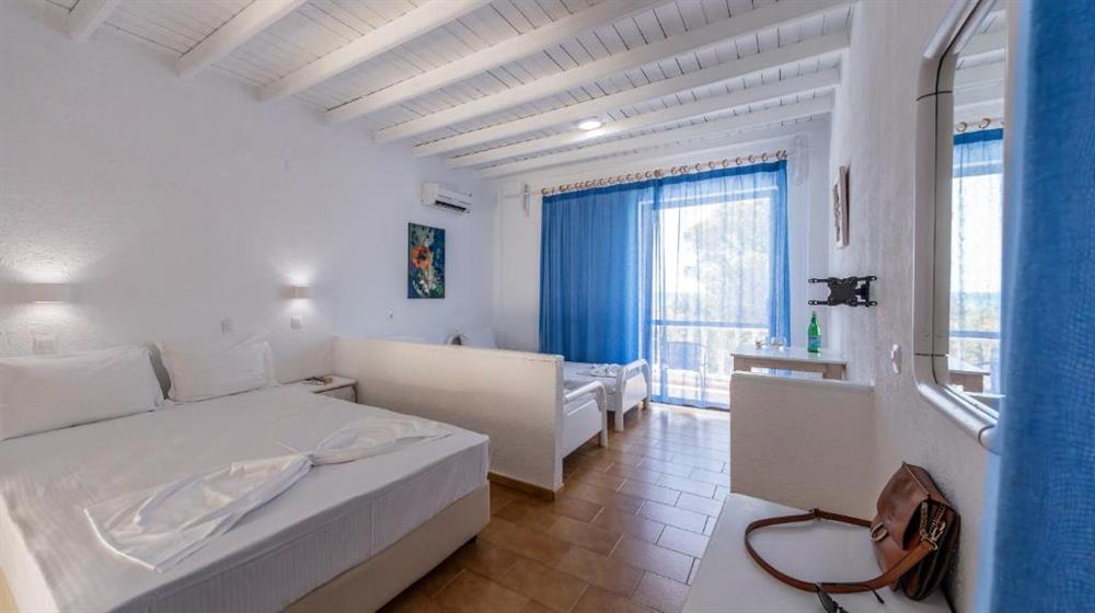 Dvoulůžkové pokoje s výhledem na moře s možností 1 přistýlky (max. obsazenost 3 dospělé osoby), klimatizace, lednice, TV/SAT, sejf (3 €/den), fén, koupelna, balkon nebo terasa.