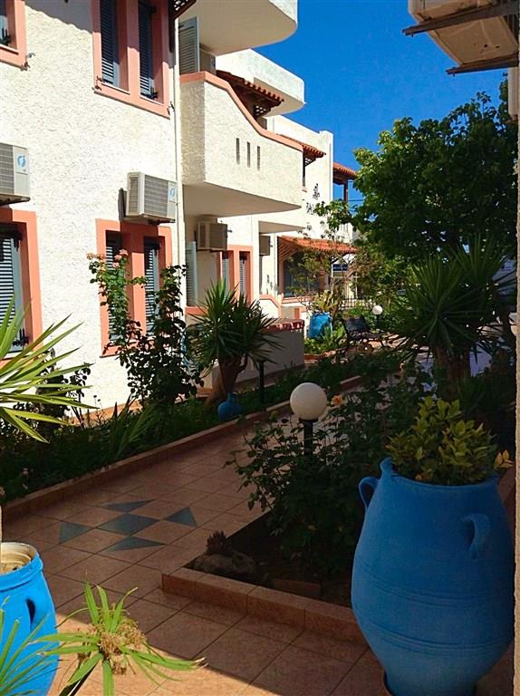 Moderní komplex skládající se ze samostatných jednopatrových budov je obklopený nádhernou zahradou plnou stromů, kvetoucích ibišků a voňavých bylin, které jsou typické pro krétskou krajinu. K dispozici je recepce s Wi-Fi připojením zdarma. Pouhých 150 m od ubytování se nachází písečná pláž Kalamokania, ideální místo pro klidné koupání. Doporučujeme udělat si zde pauzu na kávu nebo ochutnat místní speciality v taverně u malého přístavu, odkud můžete pozorovat rybáře. Odsud také vyplouvají lodě na ostrůvek Koufonisi, který láká na úžasné bělostné pláže. Jen o kousek dál najdete písečnou pláž Makry Gialos, oblíbenou u rodin s dětmi a také milovníky vodních sportů. Pláž lemuje promenáda s řadou taveren, kaváren a barů. Úžasnou příležitostí prozkoumat tradiční způsob života na vesnicích je návštěva hornatého vnitrozemí, které je také ideálním výchozím bodem pro pěší turistiku. Milovníci přírody ocení soutěsky Pefki a Orino, které patří k nejkrásnějším na východní Krétě. Dovolenou v tomto ubytování doporučujeme všem, kteří hledají klidné prostředí s tradiční krétskou pohostinností, harmonické propojení moderního komfortu s tradicí a zároveň ocení aktivnější dovolenou mimo velké hotelové komplexy.