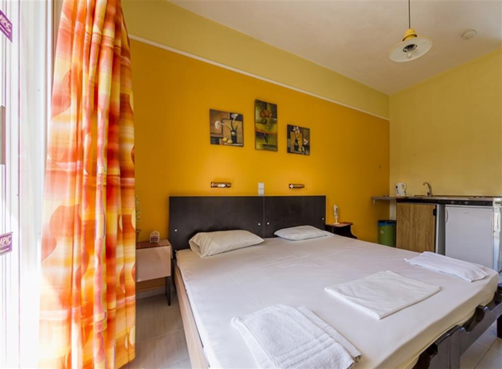 Dvoulůžková studia (max. obsazenost 2 dospělé osoby), kuchyňský kout, klimatizace (9 €/den), lednice, TV/SAT, sejf (2 €/den), koupelna, balkon nebo terasa.