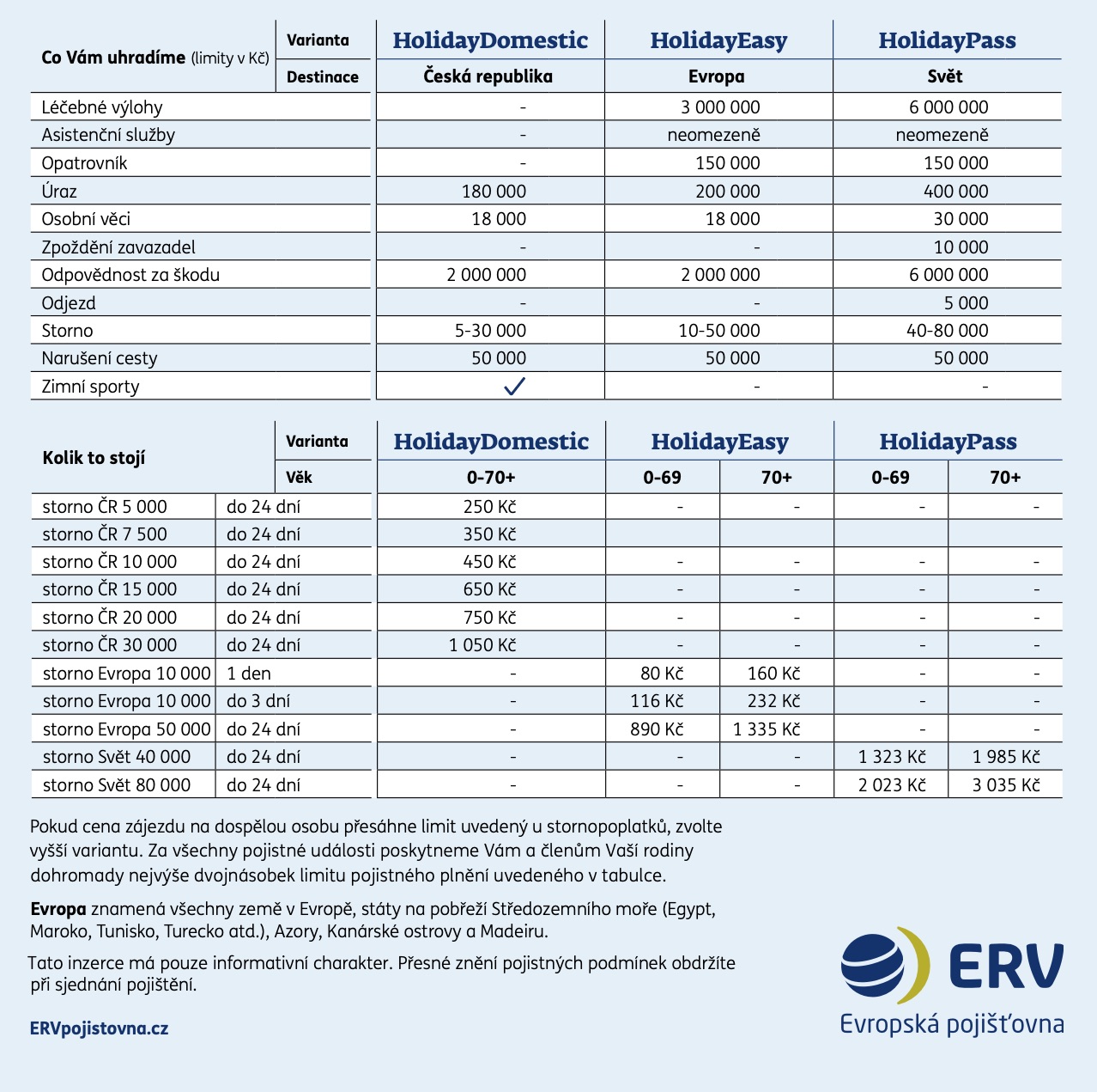 V přehledné tabulce se dozvíte limity pojistného plnění a sazby za cestovní pojištění. V přiložených souborech jsou pojistné podmínky a informace o zpracování vašich osobních údajů pojišťovnou.