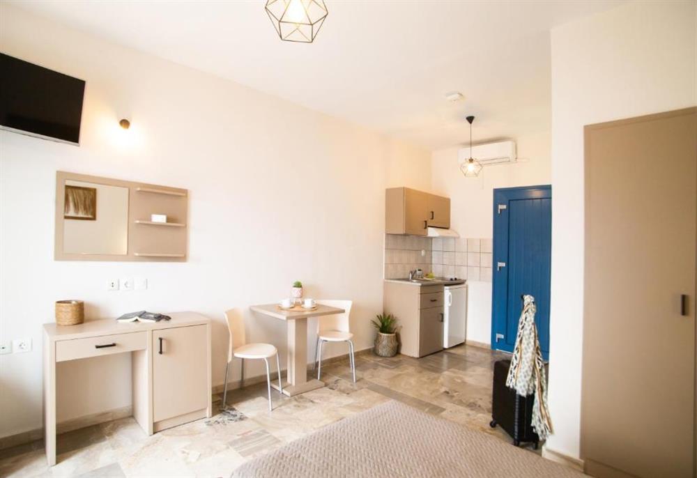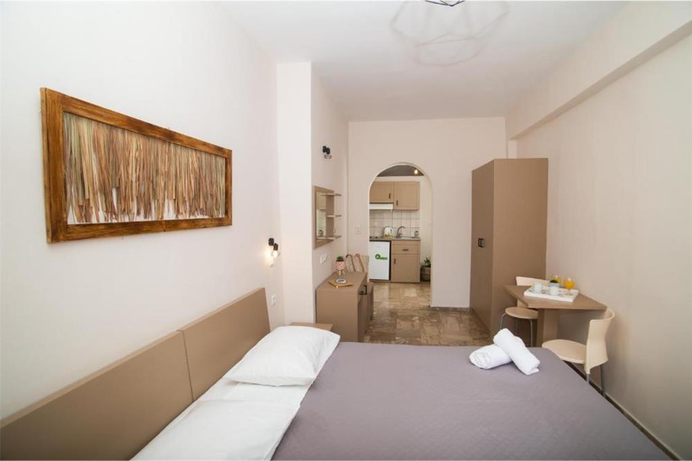 Dvoulůžková studia s možností 1 přistýlky s výhledem na moře (max. obsazenost 3 dospělé osoby), klimatizace, lednice, TV/SAT, Wi-Fi, zařízený kuchyňský kout, koupelna, balkon nebo terasa.