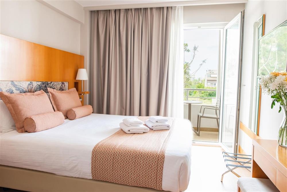 Dvoulůžkové pokoje s možností 2 přistýlek (max. obsazenost 4 dospělé osoby), klimatizace a minibar (za poplatek), konvice, TV/SAT, Wi-Fi, sejf (za poplatek), koupelna, fén, balkon nebo terasa.