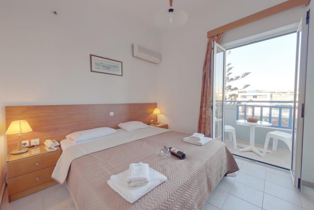 Dvoulůžkové pokoje (max. obsazenost 2 dospělé osoby), klimatizace, lednice, TV/SAT, Wi-Fi, sejf (1 €/den), fén, koupelna, balkon nebo terasa.