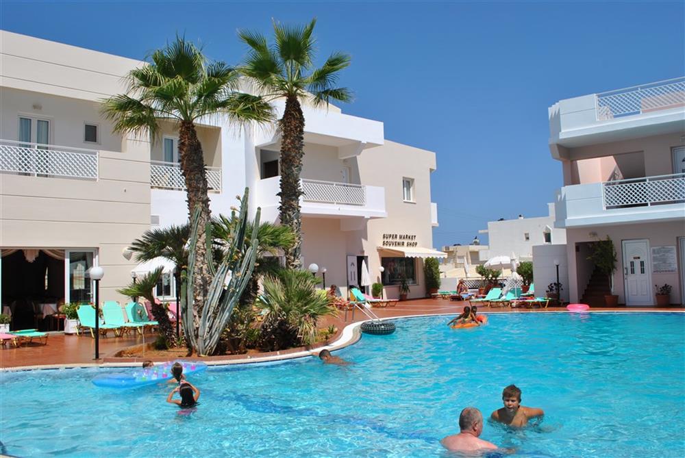 Příjemný hotelový komplex se nachází v oblíbeném letovisku Gouves a skládá se z hlavní budovy a několika dvoupodlažních budov v pěkně udržované zahradě. Ve vzdálenosti 250 m se nalézá krásná písečná pláž s pozvolným vstupem do moře. Hostům je k dispozici vstupní hala s recepcí s Wi-Fi připojením zdarma v celém areálu, minimarket, hlavní restaurace a 2 bary. Hosté mohou využít bazén se slunečníky a lehátka zdarma, pro nejmenší je zde dětský bazén, klub a hřiště. Sportovně založení hosté mohou využít stolní tenis, tenis, tělocvičnu, volejbal, aerobic a basketbal. Hotel pořádá animační programy, večerní show, tematické večery s hudbou a diskotéku. Centrum letoviska je vzdálené přibližně 300 m a je snadno dostupné příjemnou procházkou. Hotel doporučujeme i náročnějším klientům, kteří hledají kvalitní služby v blízkosti pěkného koupání a chtějí zároveň objevovat další krásy Kréty.