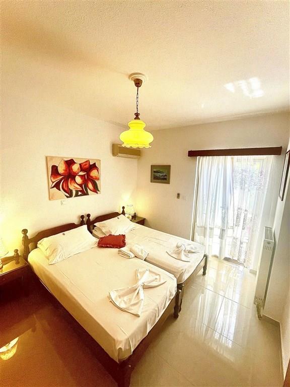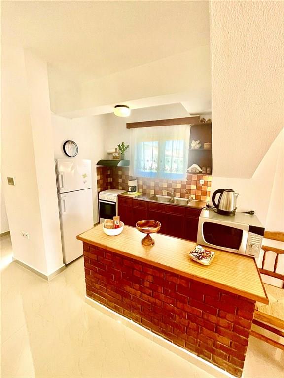 Apartmány typ mezonet (max. obsazenost 3 osoby), zařízený kuchyňský kout (trouba, konvice, kávovar, toustovač), klimatizace, lednice, TV/SAT, Wi-Fi, fén, koupelna, terasa.