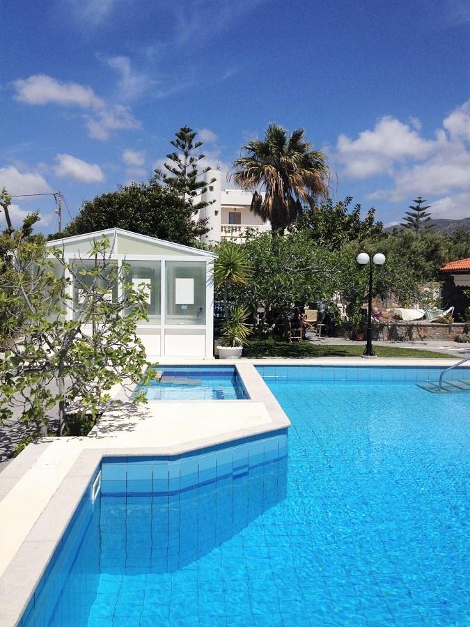 Apartmány Irene Villas se nachází jen 50 m od široké písečně-oblázkové pláže (dostupné přes cestu), 1,5 km východně od města Ierapetra, které je dnes moderním turistickým místem se spoustou obchodů, restaurací, taveren, barů a místních trhů a jehož návštěvu si určitě nenechte ujít. Mezi dvěma budovami tohoto apartmánového komplexu najdete krásnou rozlehlou zahradu se stromy a květinami, bazén a dětský bazén s lehátky a slunečníky zdarma (na pláži za poplatek). Dále je zde k dispozici krytá vířivka, sauna a venkovní gril s posezením. Nejbližší supermarket je vzdálený 500 m. Doporučujeme klientům, kteří touží po klidné dovolené v těsné blízkosti moře, na jedné z nejdelších pláží Kréty, a přitom v dosahu rušného města.