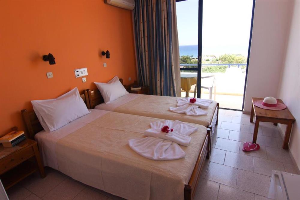 Menší rodinný hotel v pěkné zahradě se nachází v klidném prostředí letoviska Plakias jen 270 m od písečně-oblázkové pláže. Hostům je k dispozici vstupní hala s recepcí, Wi-Fi zdarma ve všech prostorách hotelu, bar a příjemné venkovní posezení, kde si můžete vychutnat snídani nebo se jen tak kochat krásným výhledem na Plakias. Osvěžit se můžete v bazénu s lehátky a slunečníky zdarma (na pláži jsou za poplatek). V nejvyšším patře hotelu můžete navštívit malé krétské tradiční muzeum. V bezprostřední blízkosti hotelu se nachází pobřežní promenáda s kavárnami, obchody se suvenýry, minimarkety a tavernami, kde si přímo u moře můžete vychutnat místní speciality anebo jen sledovat, jak z přístavu odplouvají lodě na nedaleké ostrovy nebo známou pláž Preveli. Hotel v krásném zálivu Plakias obklopený majestátními horami s okolní panenskou přírodou, která jakoby zázrakem zůstává nedotčena doporučujeme klientům, kteří si chtějí užít dovolenou v tradičním řeckém prostředí, poznávat krásy ostrova s návštěvou horských vesniček a zaplavat si v jiskřivě čistém moři. Nádherné koupání najdete i na proslulé pláži Damnoni mezi skalami s tichými zákoutími k plavání a opalování.
