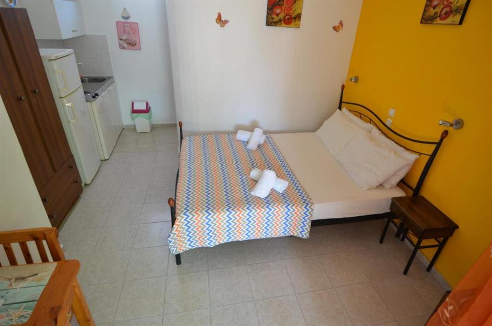 Dvoulůžková studia (max. obsazenost 2 dospělé osoby), klimatizace (za poplatek), lednice, Wi-Fi, sejf, kuchyňský kout, koupelna a balkon nebo terasa.