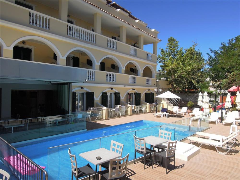 Tento velice příjemný hotel leží přímo u písečné pláže s pozvolným vstupem do moře, v klidnější části, na okraji letoviska Laganas. Hotel tvoří tři budovy zasazené v zahradě a svým hostům nabízí služby recepce s Wi‑Fi připojením zdarma, restauraci s venkovním posezením nad pláží, kde si můžete například vychutnat svou odpolední kávu, a bar. V areálu hotelu se nachází 2 bazény a dětský bazén s terasou na slunění, kde jsou lehátka a slunečníky zdarma, dále pool bar, herní místnost, kulečník a dětské hřiště. Jedinečná poloha tohoto hotelu poskytuje svým hostům krásný výhled na moře a možnost střídat koupání v bazénu s koupáním ve vlnách Jónského moře. Centrum letoviska s bezpočtem obchodů, barů a restaurací se nachází ve vzdálenosti 200 m od hotelu, přičemž nejbližší supermarket od něj naleznete pouhých 40 m. Do hlavního města se pohodlně dostanete místní autobusovou dopravou. Stylový hotel s přátelskou atmosférou doporučujeme všem, kteří ocení polohu přímo na pláži a současně jen kousek od zábavy.